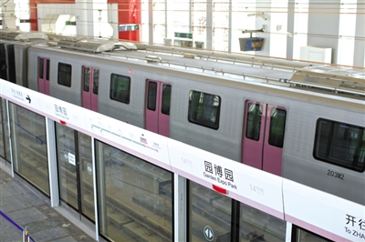 新京报讯 将于5月上旬开通的地铁14号线西段(张郭庄至西局)正在进行列车调试及试运行。据介绍,从园博园站B2口出来后步行300米,即可到达园博园最近的入口。