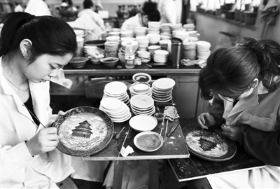 新京报讯 (记者卢漫)制胎、掐丝、点蓝、磨光……叶圣陶曾在《景泰蓝的制作》中描述过非物质文化遗产景泰蓝的制作工序。作为全国景泰蓝行业中一家中华老字号企业,近日,北京市珐琅厂免费向公众开放生产线,让市民近距离感受传统工艺之美。