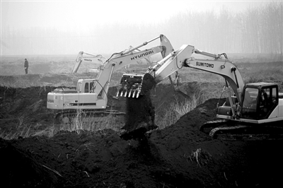3月12日,顺义区南彩镇,工作人员操作挖掘机平整土地,为平原造林工程做准备。今年,北京将在近郊等平原地区植树35万亩。新京报记者 薛珺 摄