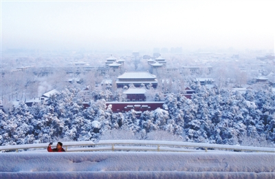 7时许,树枝上的积雪在温暖的阳光作用下,开始融化滑落,景山公园的阶梯格外湿滑,上下互不相识的人相互提醒着,相互搀扶着,不过,嘴里念叨的是这罕见的美景,尤其是后上山的人,喘着粗气,不停地向下山的人打听:“上面有多美?”