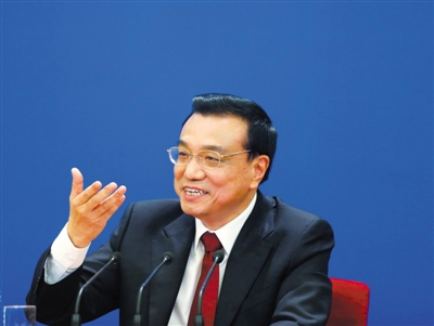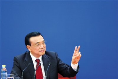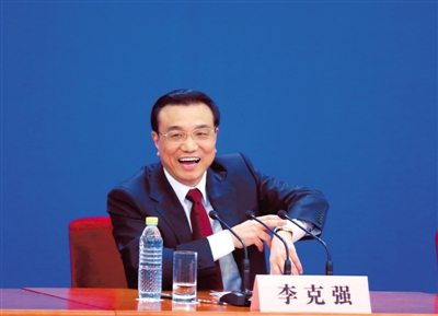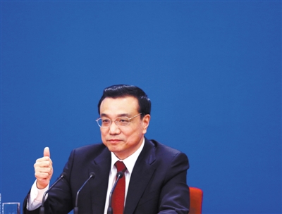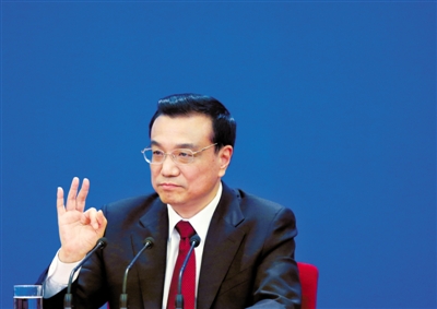 昨日,记者会接近尾声,李克强看看手表,结束记者会。在回答记者提问时,李克强多次打手势。A12-13版摄影/新京报记者 韩萌