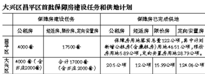 昨日,大兴区和昌平区首批公布了保障房用地供应计划。市国土局表示,其他区县的供应计划将于15日前陆续公布,接受社会监督。