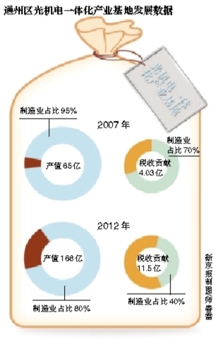 据记者了解,通州光机电一体化产业基地成立于2001年,规划面积7.5平方公里。重点发展微电子、光电子、先进装备制造业等,十多年来,已成为北京市著名的高端制造业基地。