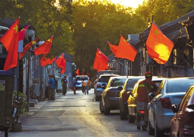 密集而曲折的胡同像是北京城的血脉,凝聚着北京人乐观从容的精气神儿。胡同里绿阴清凉、红旗招展,空气里满满都是孩子的欢声、老人的笑语。北京悠远的历史在胡同之中涓涓流淌着,它厚重的底蕴与温暖的人情,让整个城市为之叹服与骄傲。