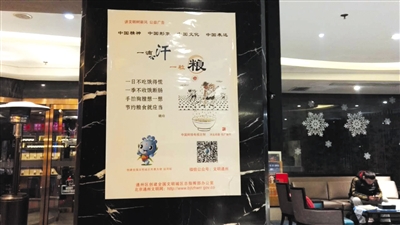 28日晚,在通州一家餐馆,大厅内张贴着“文明餐桌”公益海报,倡导节约粮食。新京报记者 沙璐 摄