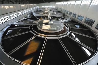 昨日,北京郭公庄水厂机械加速澄清池内正在过滤“南水”。杨益 摄