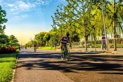 张宏(北京国际铁人三项赛运营方IMG公司副总裁):“铁三”有着不同于马拉松的特点,不仅有跑步,还包括游泳和自行车。这项运动最大的特点就是灵活性,它是一项体育旅游赛事,这也是为什么这项赛事选择在北京园博园举办的原因,赛事本身承担着旅游的功能。办好比赛的同时,更重要的是拉动区域旅游经济,让比赛成为区域旅游的亮点。