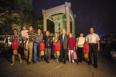 高凤林(中国运载火箭技术研究院工程师):在抗日战争胜利70周年之际,在中秋节晚上,我们来自各个领域的家庭代表来到卢沟桥畔,登上宛平城楼,共同点亮家灯,书写家训,这种形式新颖独特,既能弘扬传统文化,展示文明和谐,又能集中反映现实发展,充分展示了中华文明发展过程中的北京精神。