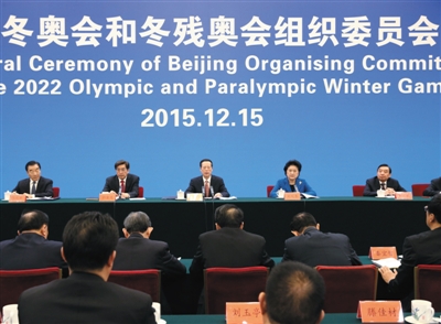 新京报讯 (记者吴为)昨日下午,北京2022年冬奥会和冬残奥会组织委员会成立大会举行,这也标志着北京2022年冬奥会和冬残奥会的各项筹办工作全面展开。