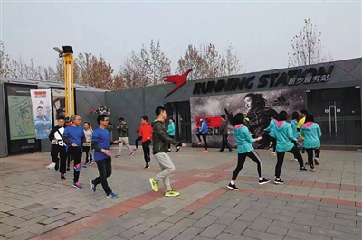 近日,朝阳公园跑步服务站,教练正带领跑步爱好者做体能训练。 跑步服务站供图