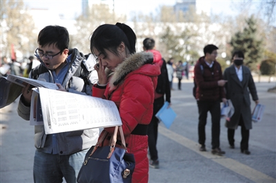 昨日上午9时许,中国国际展览中心老馆门口,已有大量求职者排队准备入场。当天,北京市年内规模最大的专门面向应届研究生的招聘会,在国展2、3、4、5、8B号馆举行,预计有3万名应届研究生现场求职应聘。