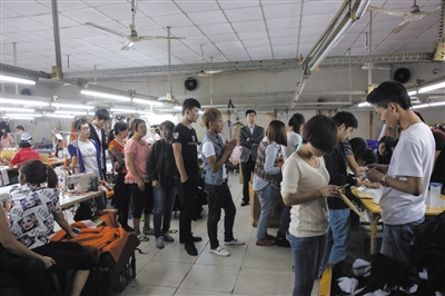 “现在开始发工资,按小组排队。”9月最后一天,位于北京南五环边的某服装厂内,财务拿着写有员工名字和工资数额的几大摞信封走进车间。