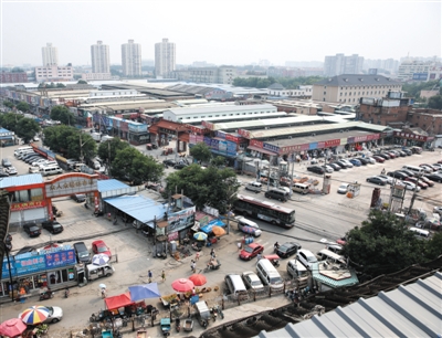 7月24日,俯瞰“温州村”一角。当年北京最大的布料市场“京都轻纺城”土地租赁合同已到期,北侧三排店铺被全部拆除,改建成停车场。