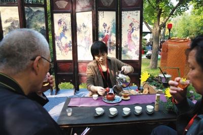 艺一名茶艺师准备了多品种茶叶请游客品茶
