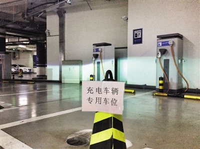 2015年6月10日,北京金融街购物中心给电动汽车预留充电用专用车位。图/IC