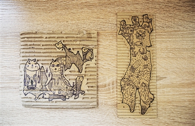 两个月后,一次美术课上,学生在裁纸时,不小心把瓦楞纸最外面的面纸撕破,露出了颜色稍浅的芯纸。刘大伟看到后,又有了新的想法,根据瓦楞纸撕开的边缘,这又成为了一种新的创作模式。