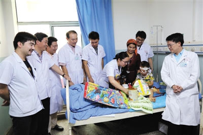 “为了避免在脸上留下疤痕,需要在口腔内进行手术,可孩子年幼口腔小感染严重,难度非常大”,渠浩协调北京口腔医院口腔颌面外科副主任医师冯芝恩等六七位援疆医生会诊,拟定治疗方案。最终手术非常成功,术后第二天木合买提就可以开口说话,并于术后第五天康复出院。