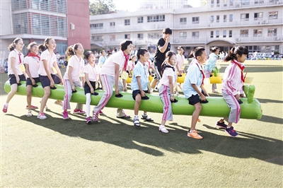 昨日,中关村第二小学,学生在玩“开学总动员”。本版摄影/新京报记者 浦峰