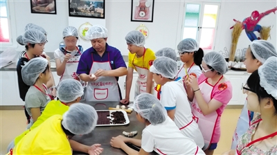 在北京义利面包食品有限公司,小记者们来到面包DIY体验中心,亲手制作面包。李鸽 摄