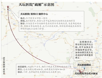 将患者引流,成为减压的必经之路。天坛医院在北京市内即将启动搬迁,位于丰台花乡的新址大楼已经封顶。与此同时,经过测算,该院每年神经内科、神经外科有9成的病人来自京外,其中大部分又来自张家口、内蒙古、山西等地。