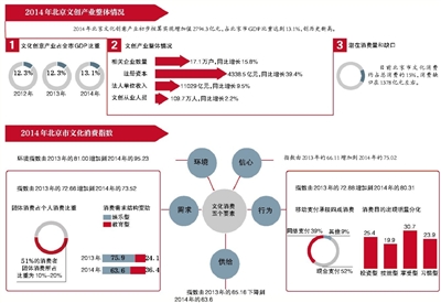王琪延认为,2014年北京市居民文化消费占总消费的15%左右,与全球相比还处于较低层次,消费缺口在1378亿元左右。