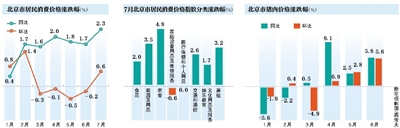 今年7月份,北京市居民消费价格总水平同比上涨2.3%,环比上涨0.6%。1至7月,北京市居民消费价格总水平比去年同期上涨1.6%。