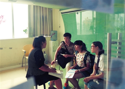 7月29日,“生存”活动首日,张阳(左二)、谭敏和白雪到某英语培训机构应聘。