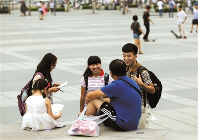 晚上七八点时,一些观众已经开始有些不耐烦,但张阳却觉得这是份不错的工作:不费脑,不费力,还能见明星。这份工作,他们次日又坚持了一整天。活动最后一天,已有20余元“积蓄”的张阳、谭敏和白雪游览了北大、清华等名校。