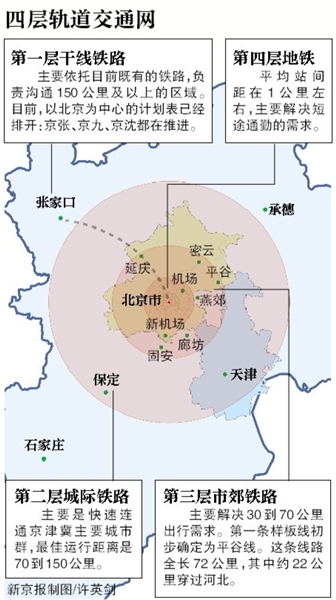 京津冀协同发展的交通规划中,轨道网将分四层。