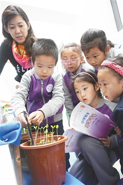 特别是在冬天,这个设于教室旁边的小基地给学生带来一片难得的绿色,学生们喜欢在这个类似温室的地方看书、休息,或者鼓捣花花草草,逗逗小鱼。“在草莓开花结果的时候,学生的班级日志就变成草莓成长的‘连续剧’。”昌平分校一年级语文老师郭启蒙开玩笑说。“在与植物相处的时候,孩子们也是最放松的,能很好缓解课堂学习的压力。”昌平分校一年级(3)班班主任华伟说。