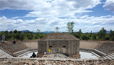时丽霞说,地堡都是砖石水泥浇筑,质地坚硬,呈八边形,高于地表约两米。南北向略长,东西向略窄,西侧修有入口,射孔与望孔分布于四周,错落有致,占地30平方米左右。