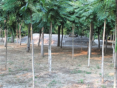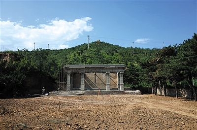 在位于团河路上的北京国际露营公园北侧,有一小片林地,在路边透过铁栅栏,可看到林内有两处“大土包”,它们位于树木之间。这些就是今年发现的两处侵华日军飞机掩体配套设施。南苑村西侧,有处更大的“石包”。一旁的工程牌显示,此南苑村第三飞机掩体环境整治工程上月27日刚竣工。