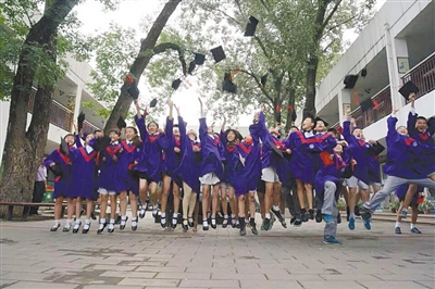2015年6月27日,清华附小六年级毕业典礼上,学生欢呼雀跃。 资料图片