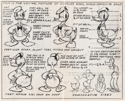 唐老鸭形象创作手稿。