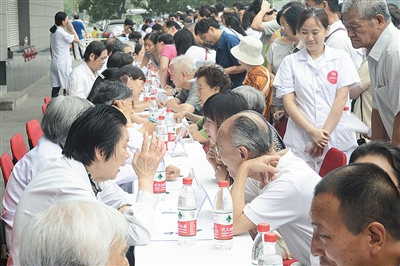新京报讯 (记者王卡拉)6月28日上午,为迎接百年院庆,北大医院开展了百名医护人员大型义诊活动。来自医院40多个重点科室、优势学科的高年资医务人员以及多位国内外知名老专家为患者及家属普及医学常识和健康知识,诊查常见疾病。现场共有766名市民接受了义诊。同时,北大医院首次尝试采用“线上义诊”的方式与不能到现场参加义诊的患者及家属进行交流。老年疾病专家刘新民亲自“尝鲜”,在网上回答了网友的咨询,就“老年人肺炎的防治”进行了两小时的在线义诊。