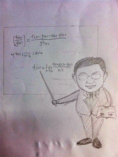 图为丁庆红学生邓睿为他绘制的漫画。