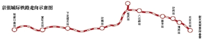 铁科院的报告披露了这条城际铁路的线路走向。京张城际计划起于北京北站,过学院南路后便转入地下,连续下穿北三环、知春路、北四环、成府路、清华东路,在万泉河以南转出地面;之后,再下穿北五环一路向北进发经过沙河站、昌平站,此后经南口镇东侧以隧道的形式穿越军都山,并在新八达岭隧道内设置八达岭长城站。