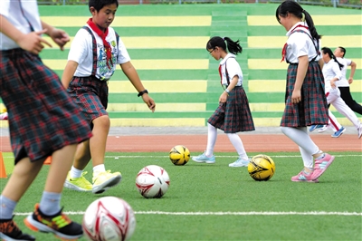 5月13日,史家小学通州分校,学生们上足球课。通州区引进大量优质教育资源。新京报记者 王嘉宁 摄