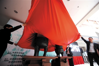 昨日,中国传媒大学,嘉宾为《鼎天鬲地·厚德育人——纪念北京建城3060年》展览揭幕。新京报记者 浦峰 摄