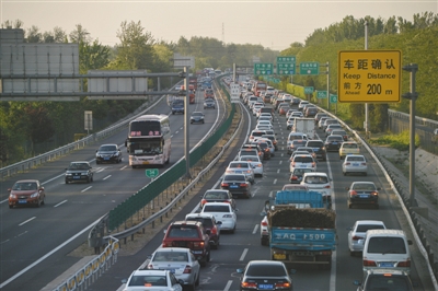 三天交通量649.77万辆;假期最后一天98万辆车出京