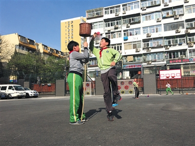 新京报讯 (记者黄颖)顶罐走、赶羊跑、插鸡尾翎……这些看起来趣味十足的项目,是原南中街小学,现芳草地国际学校民族校区的同学们,多年以来的体育课内容之一。