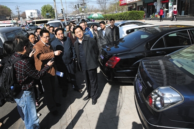 昨日上午,十几位市人大代表就“加强机动车停车服务与管理,构建科学完备的静态交通体系”议案开展第二次调研。一上午时间,代表们走访4个地点实地了解“停车难”。针对东西城这样的老城区停车位紧张问题,跟随调研的市交通委相关负责人表示,将结合首都功能疏解,考虑把与百姓无关的业态调整出老城区,把更多停车位留给百姓。新京报记者 王贵彬 摄