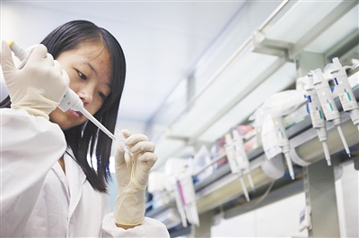 北京亦庄诺赛基因公司检测实验室,检测人员正在进行基因检测实验。新京报记者 王叔坤 摄