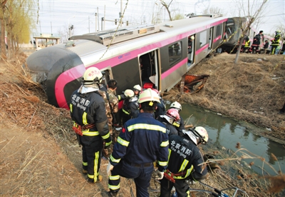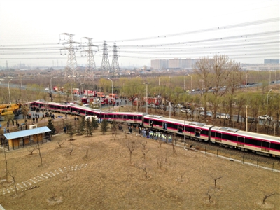 亦庄线一调试列车脱轨 冲上公路