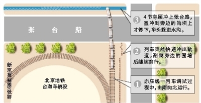 “冲上了车辆段外的张台路,造成了张台路交通拥堵,等于是断路了。”北京地铁公司新闻发言人贾鹏表示,共有四节车厢脱轨,司机一度被卡在驾驶室中。