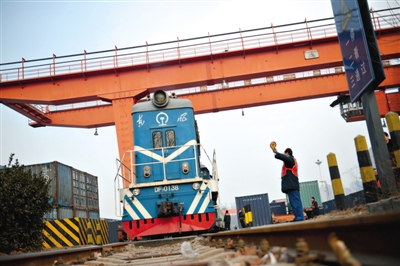 去年以来,石家庄以打造全国现代商贸物流基地为目标,持续“做加法”。图为1月20日,首趟京津冀海铁联运集装箱班列从石家庄货运中心石南货场发出。 图/CFP