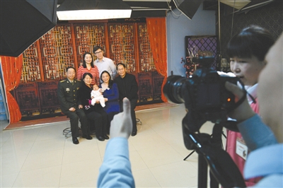 “嘿,爸爸骑马蹲裆再低点,奶奶别耸肩,好嘞好嘞……”一通招呼后,摄影师张英蹦着后退,紧接着一声快门响,一张全家福完成。从2月16日(农历二十八)起,中国照相馆里每天接待的要拍全家福的家庭至少百余家。