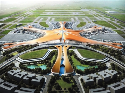 北京新机场由法国ADPI公司和英国女建筑师扎哈·哈迪德联合设计,新机场建成后每年将接待4500万名乘客,成为全球最大的机场。