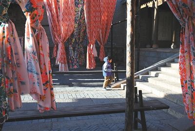 百余年前的永顺染坊也在古北水镇里找得到。这座成立于1900年的染坊其创始人张聚魁就是古北口人,“永顺染”的字号也是从古北口开始名动京城的。现在的永顺染坊不仅展示了我国染织技艺的发展,还有现场制作体验,游客可以亲身在大染缸前体验一把。