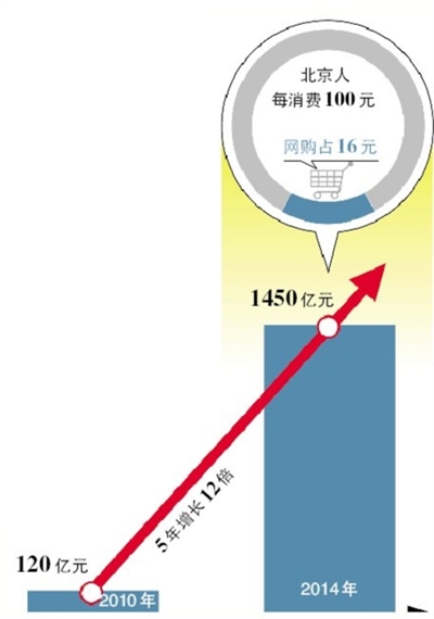 “北京人每花100元,有16元是在网上花出去的。”昨日北京市副市长程红透露,去年,北京互联网交易额达到了1450亿元,5年增长了12倍。为加强对网购的监管,北京将负责承办全国第三方网络交易监管系统,实现对电商跨区域监管。